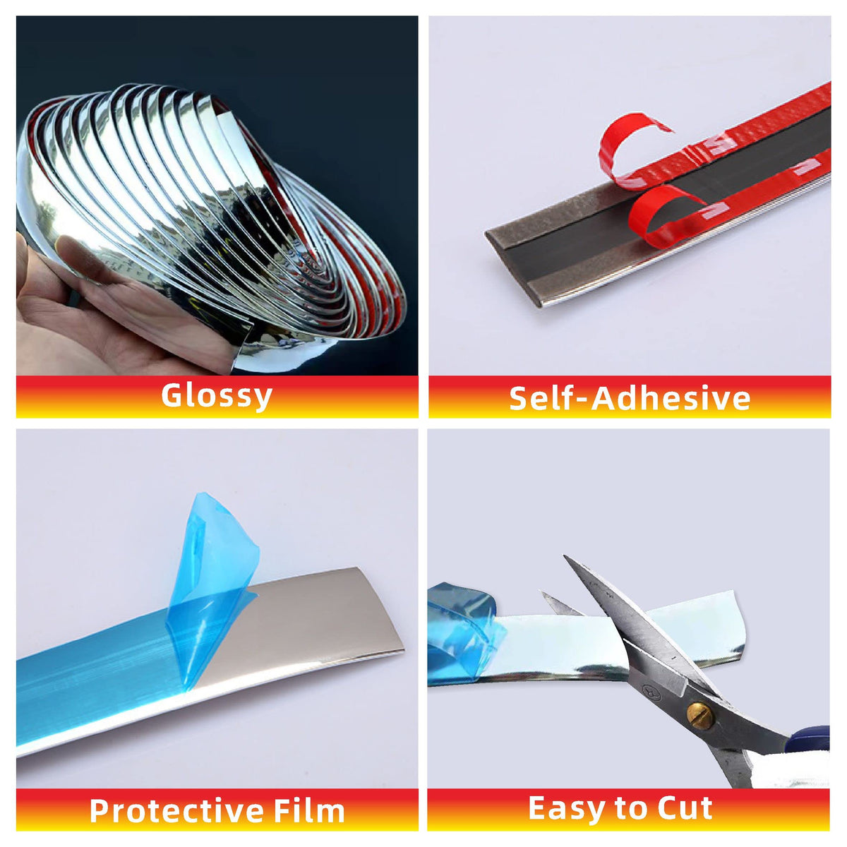 - .Multifunction.Great for Auto Exterior and Interior decoration. Applicable on car side body, bumper, grille, roof, window, bonnet, tailgate, side mirror, steering wheels, headlight & taillight, fender, center console, dashboard. Can also use as home molding trims for wall, boarder, window frame and backsplash tile.