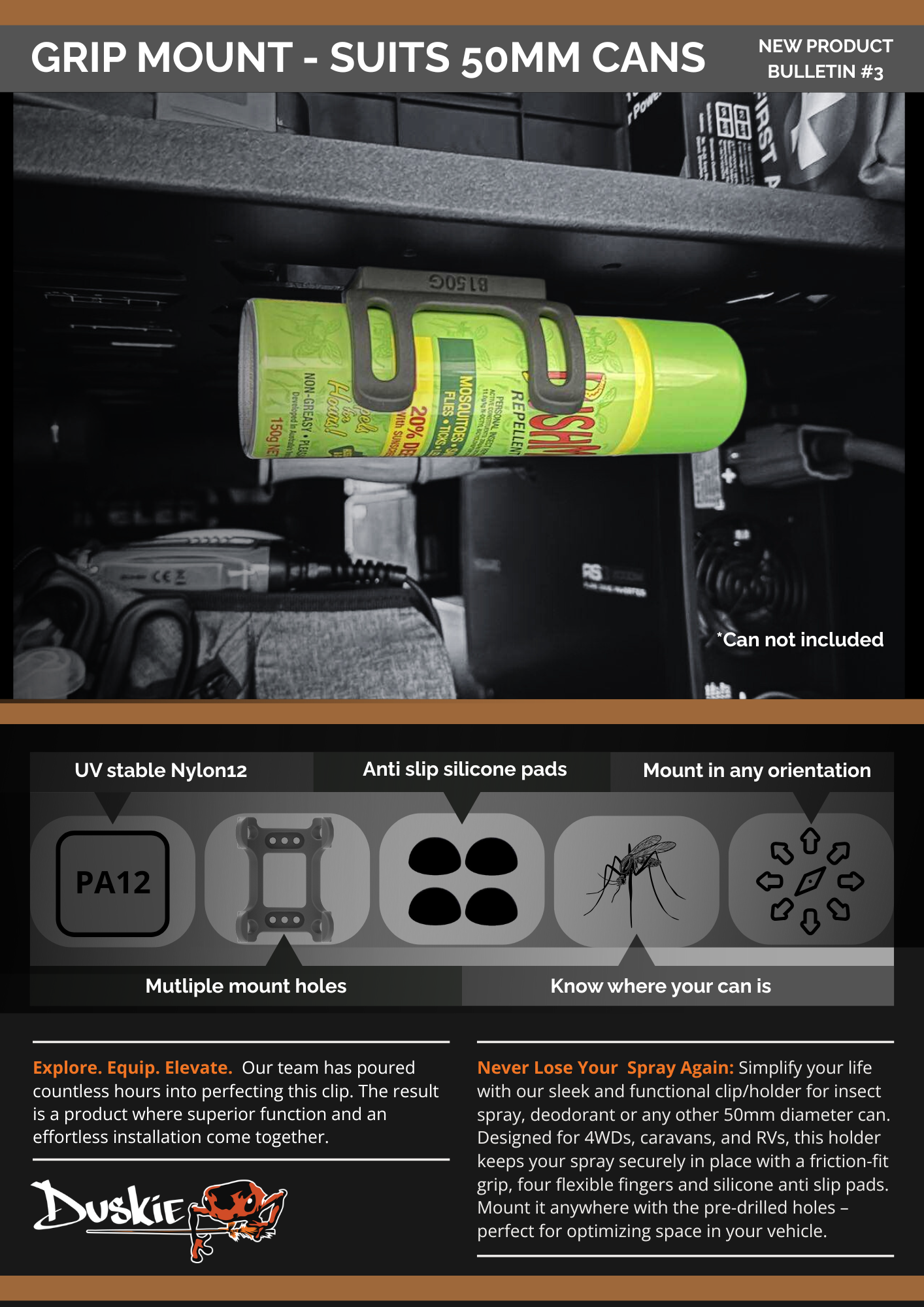 The Nylon Mountable Can Clip offers the definitive solution by providing a dedicated, rock-solid, and easily accessible storage point for your 50mm diameter cans. It eliminates clutter and ensures your vital sprays are always secure and instantly available, transforming your vehicle's utility and your peace of mind.