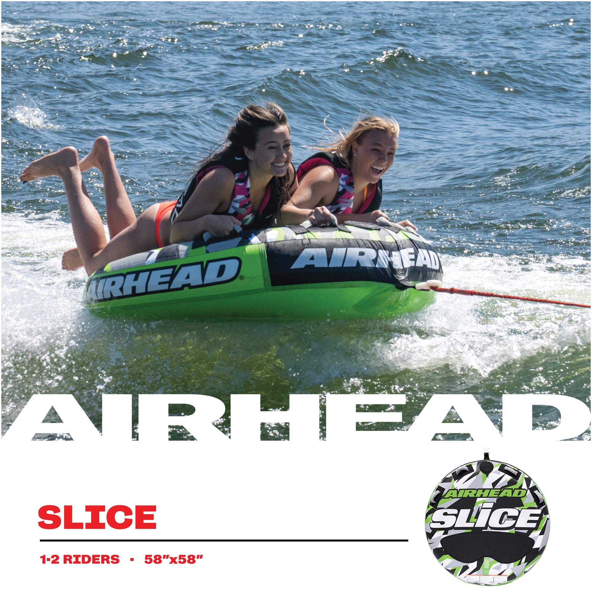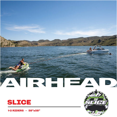 Slice is a 2 person towable tube optimized for peak performance. Unlike ordinary deck tubes, Slice is made with a tapered gusset design that slopes downward from the back to the front. This style provides a host of perks for riders and drivers, including an improved towing experience, more comfortable riding, and easy boarding from the water. The tapered edge also ensures maximum dexterity and control, both for towers and those being towed. Slice provides an unforgettable day on the water through its topside neoprene panel, 4 nylon-wrapped handles, and comfortable neoprene knuckle guards. The durable 30 gauge virgin PVC bladder is fully encased by a rugged 840 denier double-stitched nylon cover with a reinforced internal tow harness. This makes it far more dependable than ordinary inflatable tubes for boats. Slice is safe and convenient, too. It’s equipped with a Boston Valve for fast inflating and deflating, ensuring it’s always easy to have a day on the water.