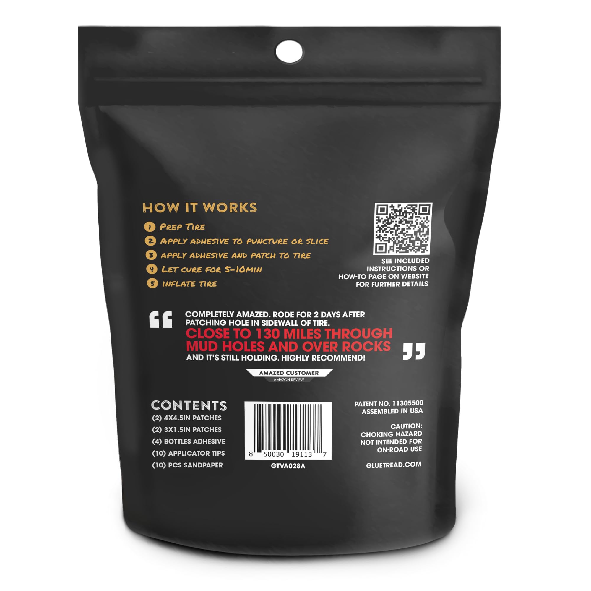 GlueTread 4x4 Sidewall Tire Repair Kit Full-Size | Sidewall Tire Patch Kit Puncture Repair Kit for Off-Road Vehicles | Improved Rubber Formula No Accelerator Needed 10 Minutes Curing Time