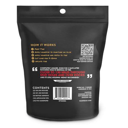 - VERSATILE PATCH SIZES: This tire sidewall patch kit includes [2] 4" x 4.5" and [2] 3” x 1.5” patches, catering to various types of damage on off-road tires for comprehensive tire repair solutions.