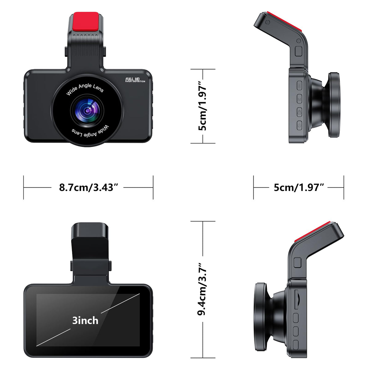 - 【HD 1080P & 170°Wide Angle】: This car camera uses a 3.0-inch screen and a 170-degree wide-angle lens to make the recording range wider and ensure no blind spots. The front dash cam can show real-time images, help you see every detail as clearly as possible when playback, and brings a better visual experience.