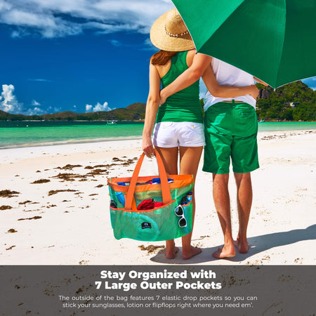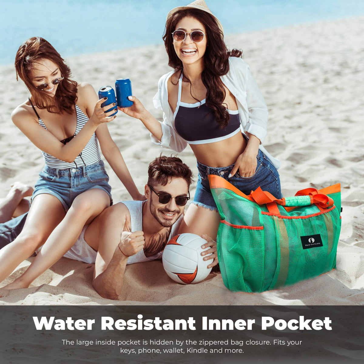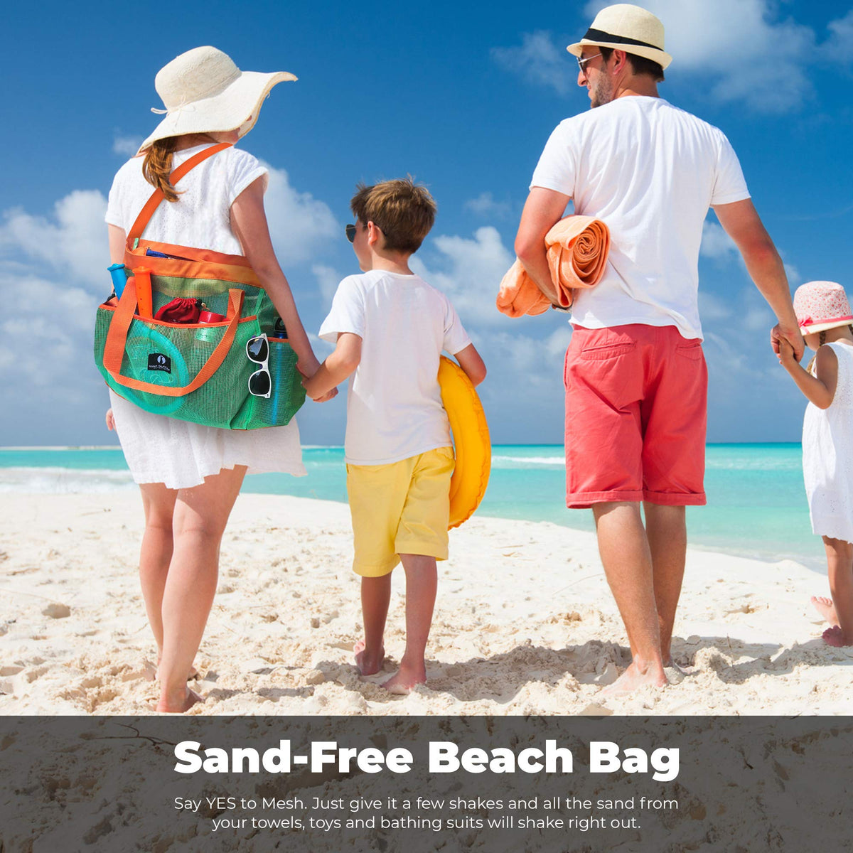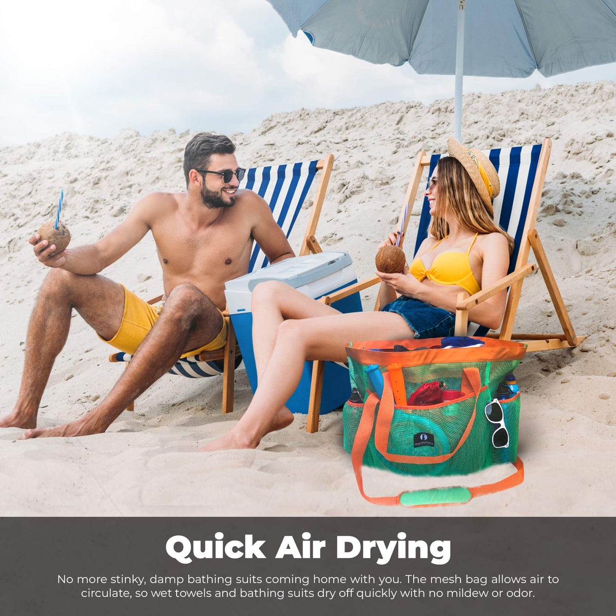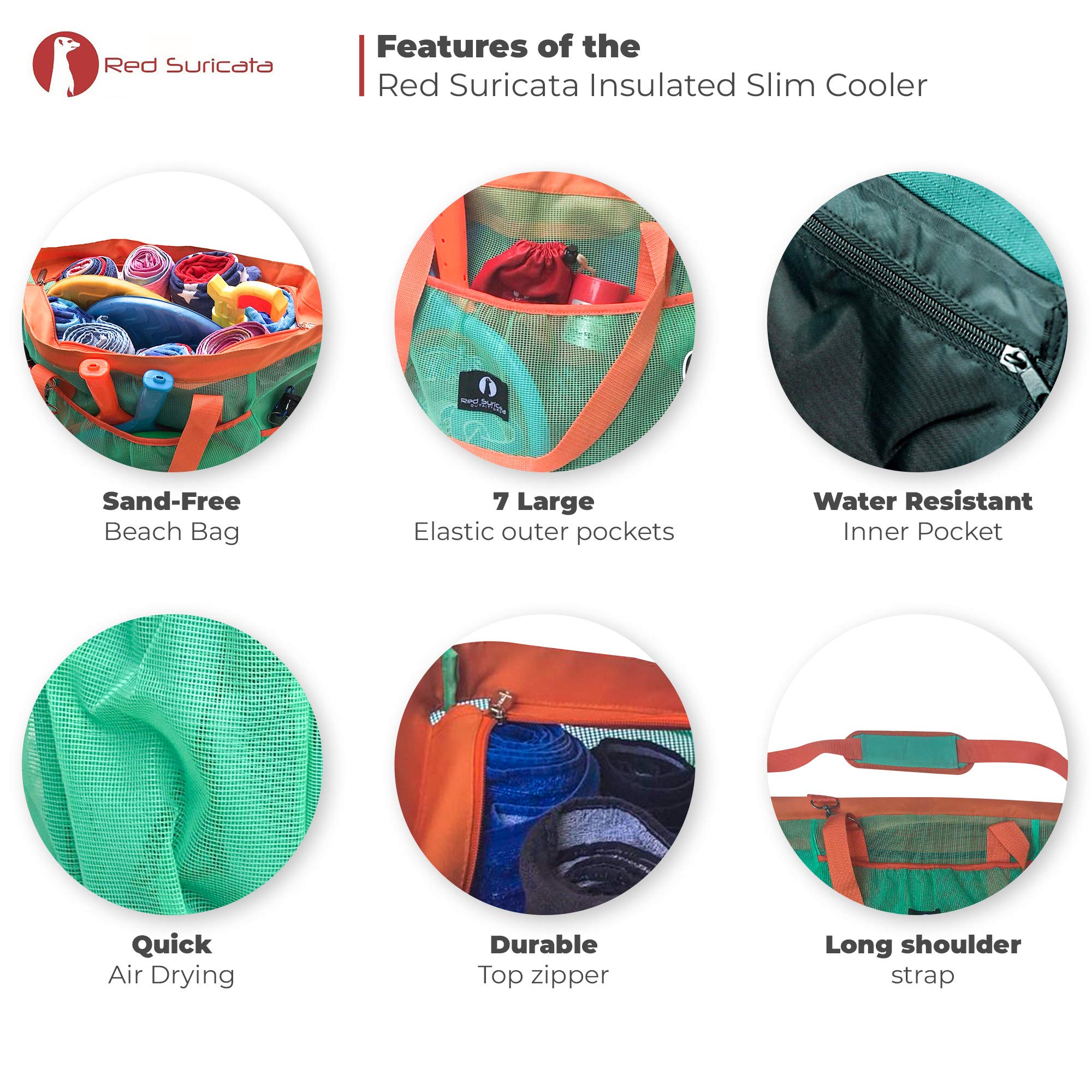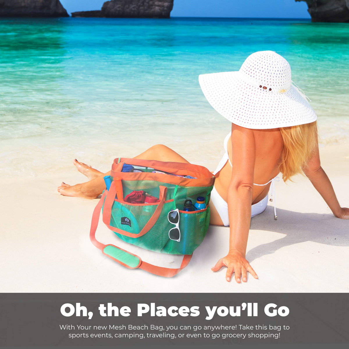 This Bag is the Best Way for YOU to Have a Better Beach Day ⦠A beach day can only happen when you have all the things you need with you, but thatâs the easy part. The hard part is finding a bag that fits everyoneâs towels, bathing suits, snacks, and drinks. Red Suricata has designed this Extra-Large Mesh Beach Bag, so YOU can enjoy a better beach day. This XL mesh tote means you donât have to lug multiple bags to the pool/ beach. Plus, the extremely durable mesh and comfortable carry handles, let you fill the bag to the max. It also ensures quick air drying, filters out the sand and comes in fashionable colors.  Sand-Free Beach Bag Ââ Say YES to Mesh. Just give it a few shakes and all the sand from your towels, toys and bathing suits will shake right out. 7 Large Outer Pockets Â- The outside of the bag features 7 elastic drop pockets so you can stick your sunglasses, lotion or flipflops right where you need emâ. Best YKK 2-Way Zipper â our beach tote is crowned with the leading Japanese YKK ZIPPER â zip open and shut at will with the best zipper money can buy â a zippered tote is only as good as its zipper BONUS Water resistant Inner Pocket Ââ The large inside pocket is hidden by the zippered bag closure. Fits your keys, phone, wallet, Kindle and more. Your valuables will be protected from the sun, sea, and sand! Quick Air Drying Ââ No more stinky, damp bathing suits coming home with you. The mesh bag allows air to circulate, so wet towels and bathing suits dry off quickly with no mildew or odor. Adventure Awaits. So, Get Your XL Mesh Beach Tote Today!