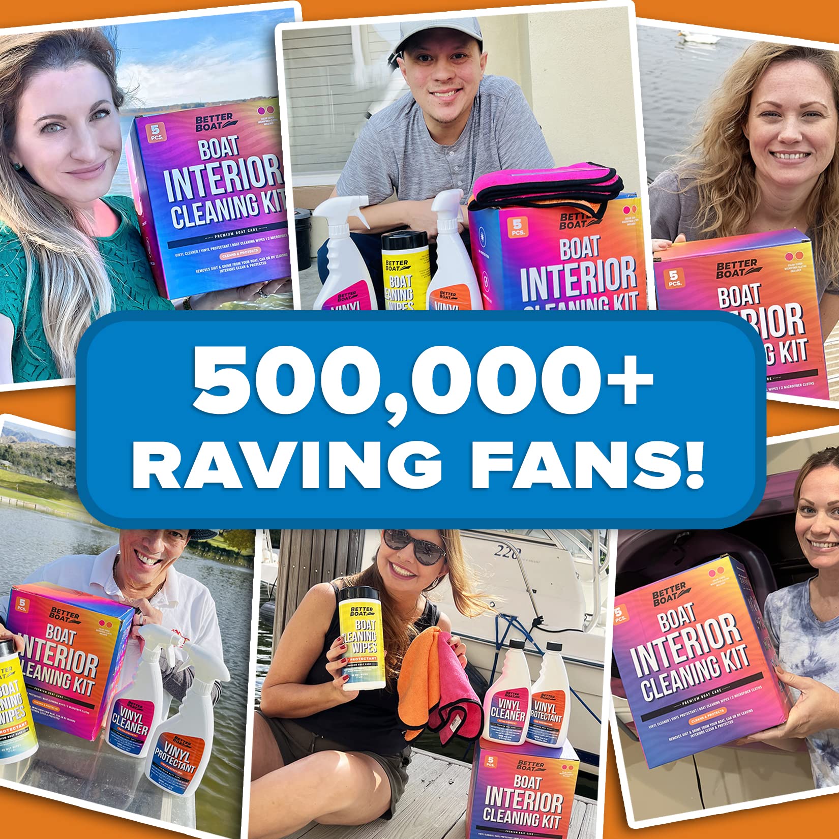 Looking for the complete set for cleaning your boat interior or looking for that special birthday gift for boaters, christmas gifts boat or boat gifts for dad? Our set comes with everything needed to clean and care for your boating interior. The perfect gift for boater in your life. Our advanced formula boat accessories including our boat vinyl cleaner cleans, conditions and protects leather and vinyl cleaner for boat seats and cushions on the interior or exterior of your boat. Use in conjunction with our included Vinyl Protectant and Boat wipes to revive suppleness, restore color and leave a high-gloss shine protective finish. Our car and boat seat cleaner and protectant contains a creamy emulsion base. It offers a potent combination of sulfate free surfactants for gentle yet effective cleaning, silicones for high-gloss shine finish, lanolin for extra conditioning, and a UV protectant designed for upholstery and trim of boats and automobiles. The perfect boating gift comes with 2 microfiber cloths as well as detailed instructions for all products. A safe vinyl conditioner or boat vinyl cleaner and protectant for vinyl or leather . Use on real or fake leather as a protectant and cleaner for all colors. Use our boat upholstery cleaner on cars, campers, truck covers, spa covers and more. We proudly stand behind the quality of our boat interior cleaner and marine vinyl protectant as well as all our boating and pontoon boat accessories! We are a family owned American business committed to making premium quality boat cleaning supplies and boat owner gift ideas. MADE IN USA